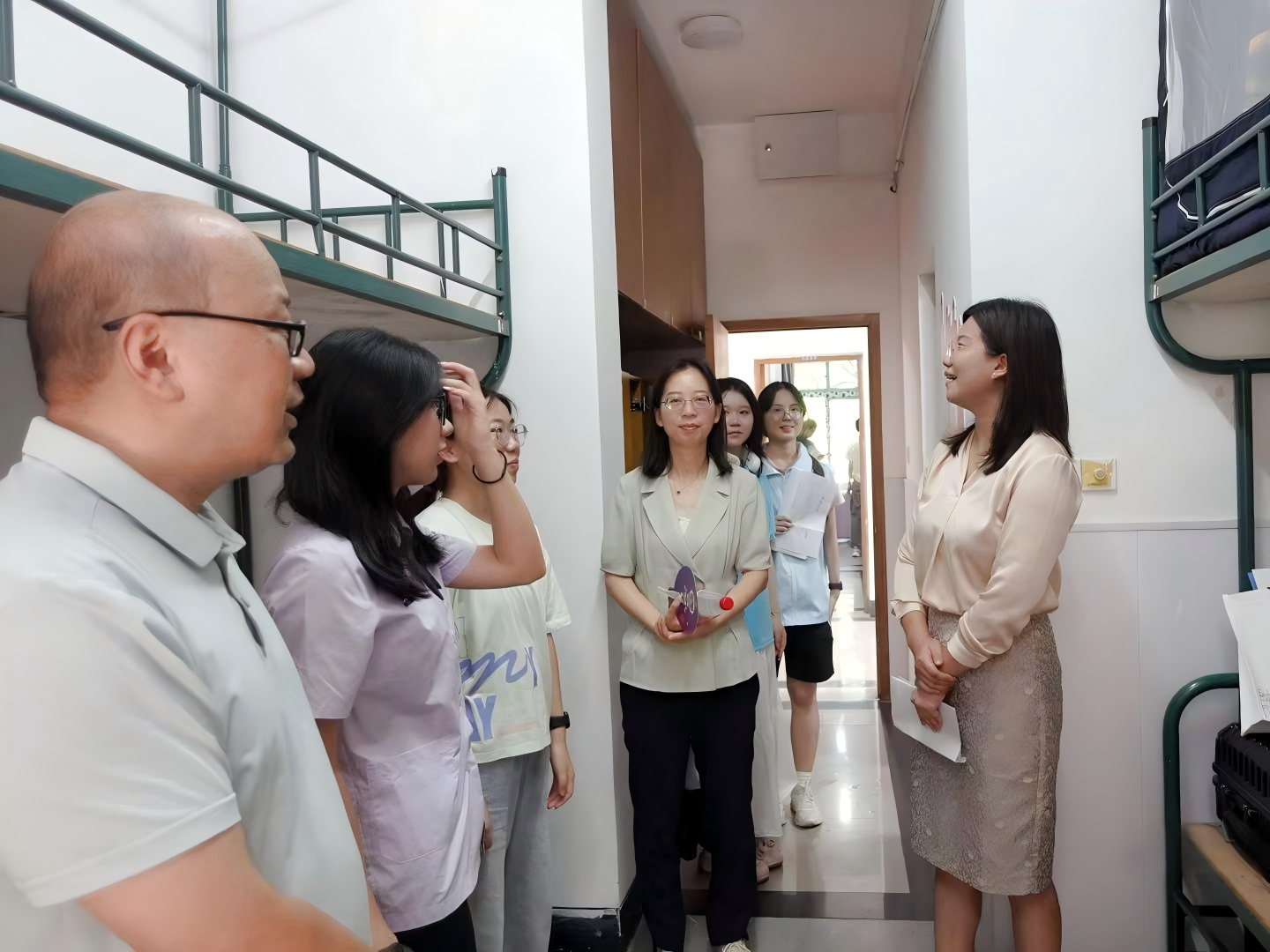 学院领导一行深入走访了下沙校区的新生寝室,与新同学亲切交流,并表达了欢迎和新学期问候。走访过程中,领导们细致入微地关心同学们的入住适应情况,并为九月份生日的新生送上生日祝福。