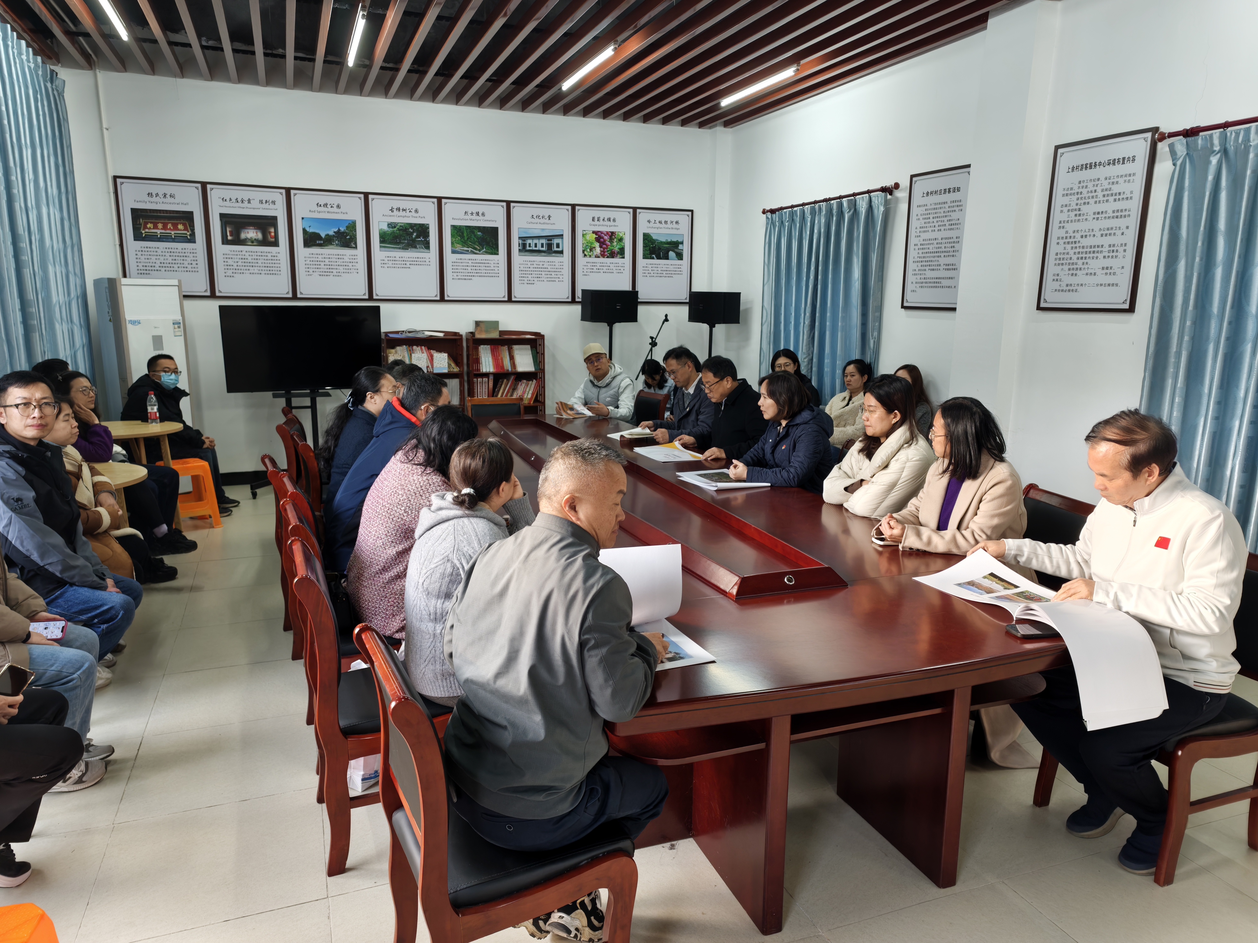 研学队伍首先抵达“枫桥经验”发源地——枫桥镇,走进枫桥经验陈列馆。馆内丰富的史料文献、生动的场景复原、详实的实物展品,系统展现了“枫桥经验”从1963年诞生至今的演进脉络与创新发展历程。从“小事不出村,大事不出镇,矛盾不上交”的初始理念,到新时代坚持和发展“枫桥经验”的实践成果,老师们认真聆听讲解,不时驻足交流,深入理解这一全国政法综治战线“一面旗帜”的时代价值与实践伟力。结合公共管理专业视角,大家围绕基层矛盾化解、社会治理创新、数字化治理赋能等议题展开热烈探讨,纷纷表示“枫桥经验”中蕴含的群众路线、源头治理、多元共治等理念,为新时代公共管理学科建设与实践工作提供了宝贵借鉴。